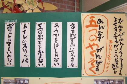 大事なことは,何のための『新・五つのやくそく』なのかということです。すべての子どもの心の中に,「だれもが安心して気持ちよく過ごせる学校にするために」の思いが宿れば,実現に向かうはずです。もちろん,五つとも大丈夫!という子もたくさんいます。