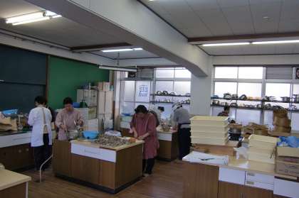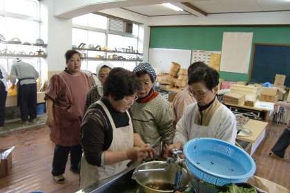運動場で子どもたちが自転車の走行練習をしている同じ時間帯に家庭科室では地域女性会の皆さんが明日の準備に大わらわでした。