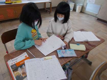 この日は、一度書いた作品を友達と読合い、校正しました。