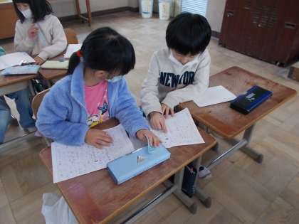 国語科では「お話のさくしゃになろう」という学習に取り組んでいます。「はじめ」「中」「おわり」という構成を意識して、自由な発想で自分なりのお話を作っています。