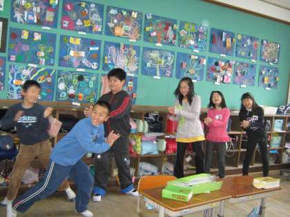 総合的な学習の時間には教科書はありません。自分たちで課題を見つけ,情報を集め,解決していくことこそがねらいです。4年生は前期に地域包括支援センターの方のお力をお借りして「認知症について」の学習をしたことや,「高齢者福祉大会」で交通安全についてお話しする機会があったことなどを土台に,「吉田の人たちのために役に立てることは何か」を話し合った結果,「高齢者のための安全マップ作り」「高齢者の交通安全についての話を発表する」ということになりました。