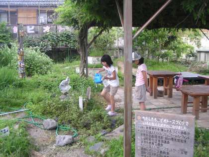 夏休み,順番に,栽培している作物の世話と観察に,交代で,児童がやってきます。