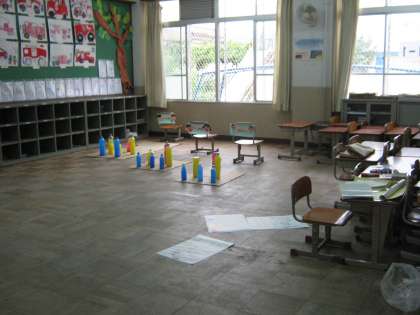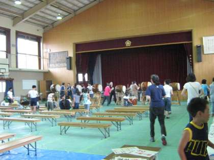 残念ながら雨のため,夏祭りを体育館と校舎で行うことになりました。