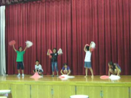 午後6時20分からは, 四錦小夏まつり実行委員会踊り隊が体育館で踊りを発表しました。ポンポンをもって,楽しく踊りました。