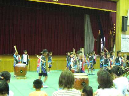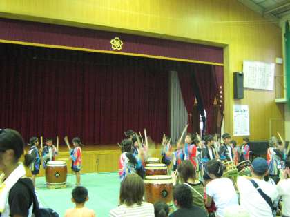 午後6時30分からは,吉田今宮太鼓と四錦小部活動和太鼓の子どもたちの発表です。部活動では,4月から入部した3年生が半数ですが,3曲ともしっかりと合わせて演奏しました。