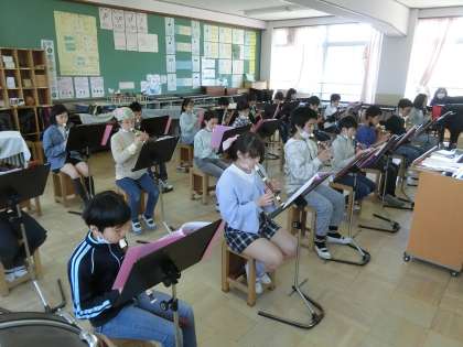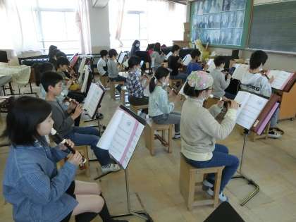 音楽室では、6年生がリコーダーで演奏をしていました。窓からさわやかな風が吹き、リコーダーのやわらかい音色も運動場に心地よく響いていました。