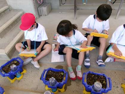 さっそく芽を観察し,観察カードを書きました。「もっと大きくなってほしい」「芽が出てうれしい」といった声が多くありました。