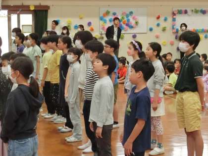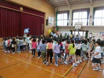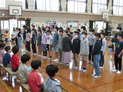 中休みに、全校で〇×クイズをして盛り上がりました。