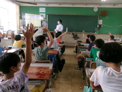 今日は左京税務署から講師を招き、「租税教室」を行いました。税金の種類や違いを教えてもらいました。また、「もしも税金がない世界だったら」というアニメを通して税金の大切さについて学習しました。