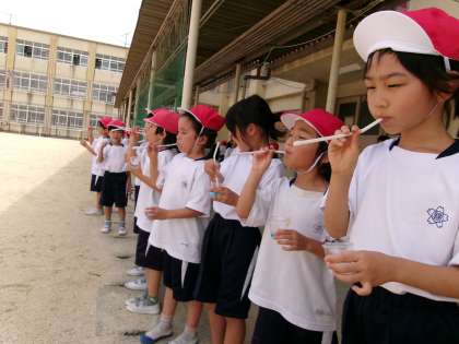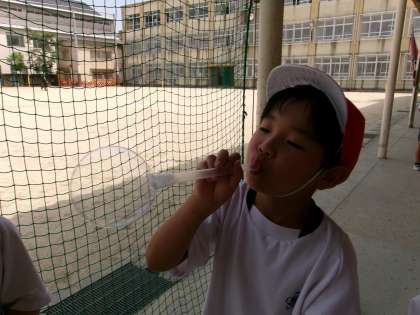 できるだけ大きく膨らませたり,たくさんシャボン玉を作ったりと,元気よく活動していました。