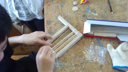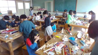 図工の時間に木材を使って工作を行いました。