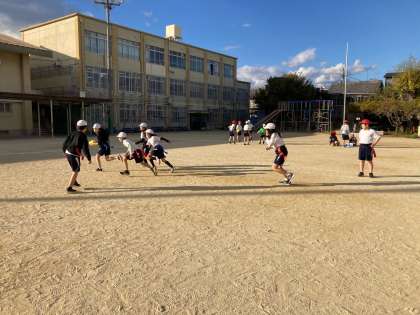 4年生「陣取りゲーム タグラグビー」