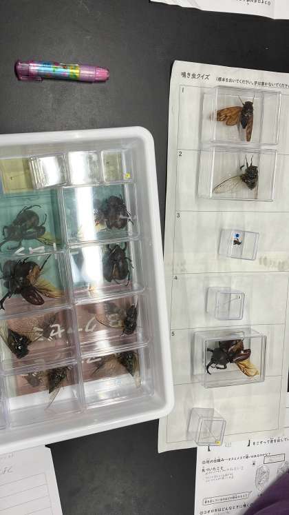 1組は「泣き虫のひみつ」というタイトルの学習で昆虫が音を出す仕組みや理由について学びました。じっくりと観察をして、たくさんのことに気がついていました。