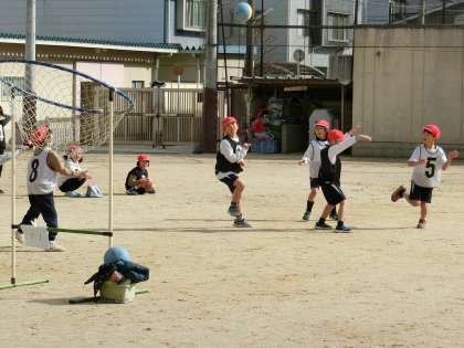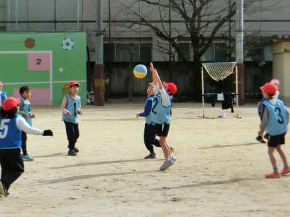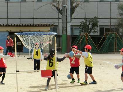 2年生は、運動場でパスゲームをしていました。寒さも吹き飛ばす元気さで、楽しく体育の学習をしていました。