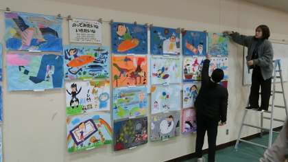 明日から図工展です。午後から児童が作品を体育館に搬入し、放課後は教職員で展示作業を行いました。明日は授業参観もあります。保護者の皆様は、子どもたちの力作をゆっくりとご覧ください。