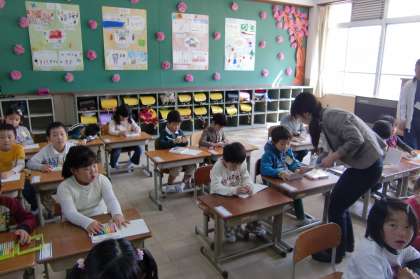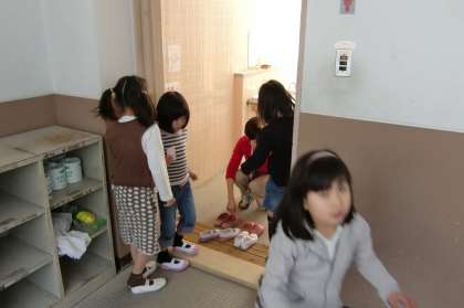 1年生は今日から集団生活を始めます。勉強も遊びも仲良く一所懸命にするのがいいですね。