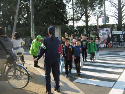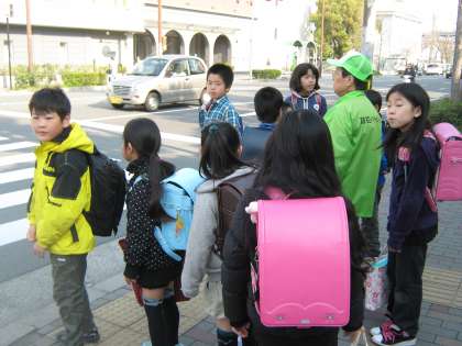 子どもたちは,吉田みまもる隊の方によると「今日は,みんな張り切って,定刻に集まって,固まって来られた」ようです。それぞれの登校グループのリーダーを中心にみなが頑張っているのですね。ぴかぴかの1年生もお兄さん・お姉さんと一緒です。昨年より,早くにみんな通り過ぎていきました。たくさんで,来たら,今度は,信号を待つ時や歩き方を考えていかねかればなりません。今年1年間,この調子で頑張りましょう。川端警察の方,吉田みまもる隊のみなさん,PTA地域委員の方々,よろしくお願いします。
