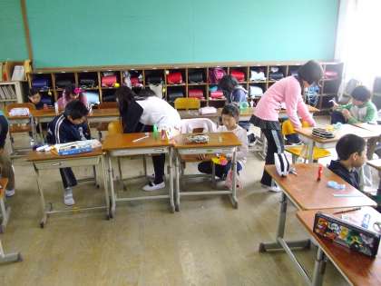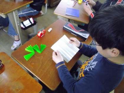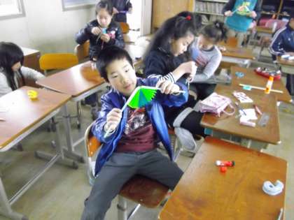 算数の授業で,角の大きさを勉強しました。教室のいろいろな場所の角の大きさを測りました。この活動を通して,「直線がどれだけまわったかで角の大きさが決まる」ということを学びました。これからは,授業で角度についてどんどん詳しくなっていけると思います。