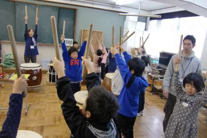 今日は3年生が和太鼓(今宮太鼓)を体験する日です。