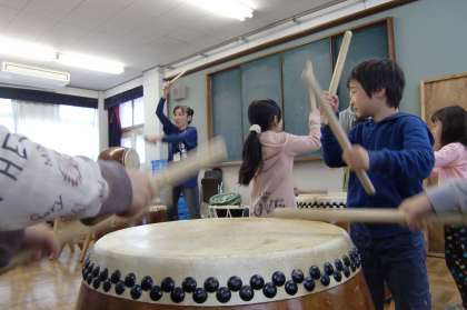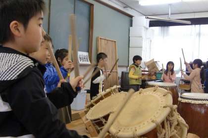 これだけの太鼓の種類・数,それにこれだけの熱心な指導はどこの学校にもあるというものではありません。四錦の子どもの特典です。