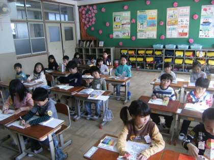 1年生,朝学習も姿勢よく!