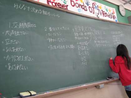 5年生までに宿泊学習や遠足など校外へ出かけた経験を活かして,ルールを自分たちで何が大切なのか確認していきました。