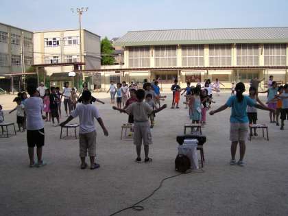 ラジオ体操(後半)の3日目となると,学校での参加者も前半の頃のような人数になってきました。