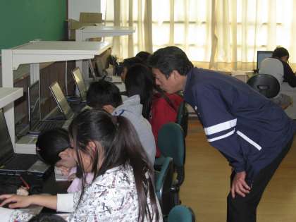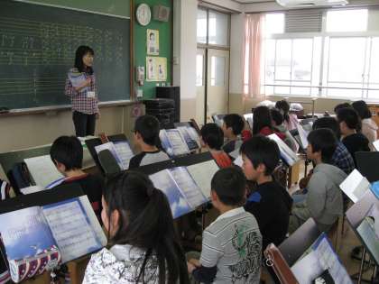でも,体育の授業や総合で調べ学習をしていると徐々にいつもの感じに戻ってきました。・・・が,4時間目には今年初めての音楽の授業で藤原先生とも初めての出会い。少し緊張した面持ちになりましたが,徐々にほぐれてきて最後にはきれいな歌声で「つばさをください」を歌っていました。