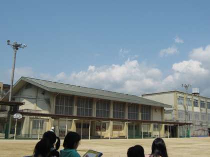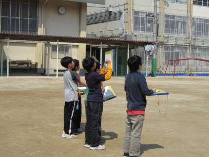 今日は天気もよく,理科の時間に校庭へ出て雲の動きや様子の変化を観察しました。