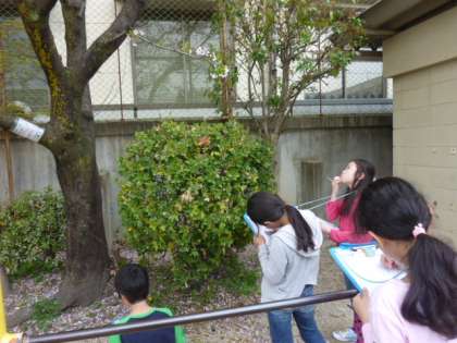 そこで,校内にある植物の中で,みんなでサクラを1年間観察することにしました。