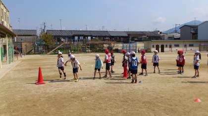 今日の体育はリレーでした。2年生まではリレーの時は,バトンの代わりにリングを使っていましたが,3年生はバトンを使って本格的にリレーをします。「テイクオーバーゾーン」や「コーナートップ」という新しいルールも知りました。白熱のレースに,みんなの応援も大盛り上がりでした。