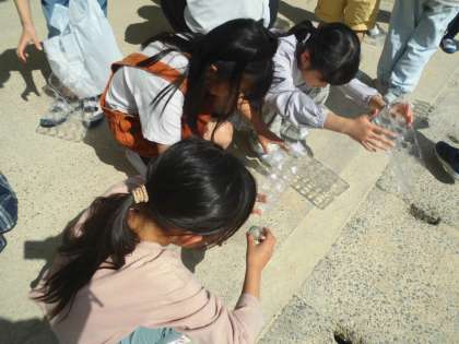 「ひかりのプレゼント」は様々な空き容器に光を通して、見え方を楽しむ学習です。