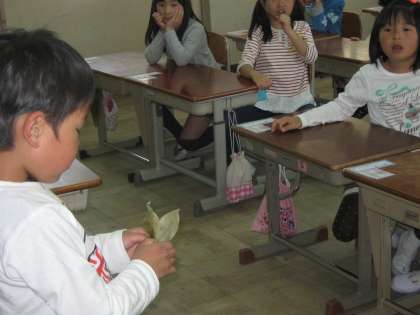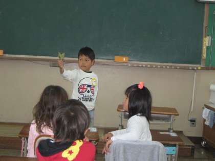 クラスの男の子が「おじいちゃんの家でかわった形の葉っぱを見つけました。」と学校に持ってきてくれました。