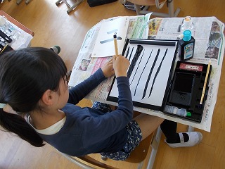 準備の仕方や、筆の使い方を学んだ後、半紙に書いてみました。