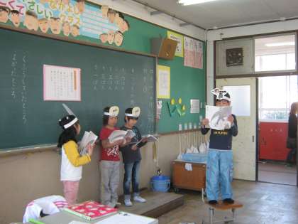 今日は,3年生になって初めての参観日でした。国語の授業で「きつつきの商売」の音読をグループ発表しました。