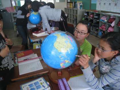 社会の学習で今日は地球儀を使って色々な国の位置を知りました。名前は聞いたことあるけれど,こんな場所にあるなんて知らなかった国がいっぱいありました。