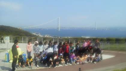 明石海峡大橋を渡って淡路島へ。絶景ポイントで記念写真。快晴。爽快。