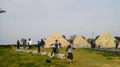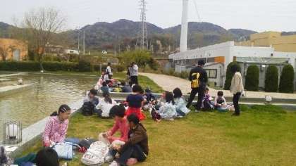 いい天気。お弁当を食べて、くつろいでいます。というより、思いっきり遊んでいる子もいます。