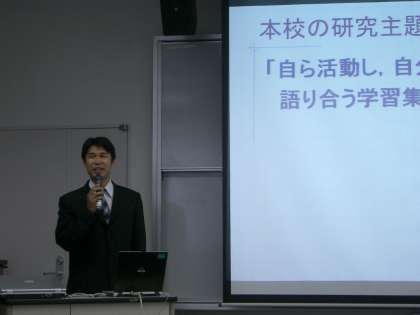 8月19日に,岡山県で開催されました岡山県の教員を対象とする研修会「教育ワークショップ2009」に,「本校の実践を是非,岡山県の教員に紹介してほしい」とベネッセコーポレーション本社からの依頼があり,3名で研究内容及び具体的な実践を提言・報告に参加いたしました。
