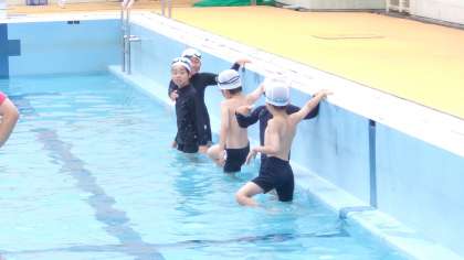 お互いに水を掛け合ったり、プールの中を歩いたりと、様々な活動を行っています。