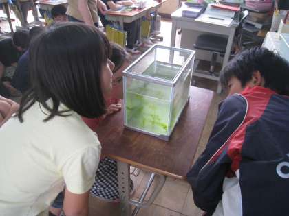 めだかのオスとメスの見分け方についてみんなで学習をし,実際に見分けてみました。