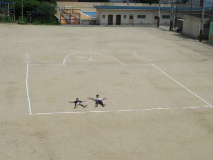 社会科の「天皇中心の国づくり」の学習で奈良の大仏がどのようにしてつくられたのかを学習しました。その際、大仏の大きさを体感するために、実際に運動場へ行き、白線で大仏を書いてみました。出来上がったものを見て、こんなに大きなものを1000年以上前に平和になるようにという思いで作ったんだと感心していました。