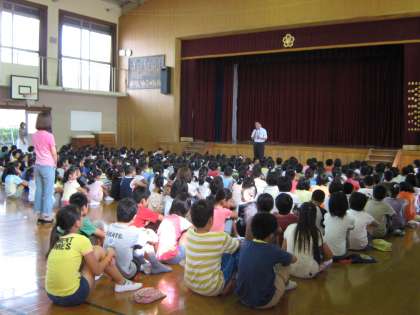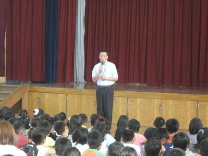 夏休みが終わり,今日から授業が始まりました。授業開始に先立ち,朝会で校長先生から3つのことについてお話がありました。