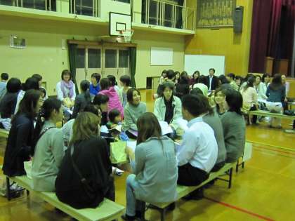 午後7時から、体育館で、PTAの委員会総会が行われました。遅い時間からありがとうございます。PTA会長、校長のあいさつの後、さっそく各委員会に分かれて、今年の正副委員さんを選出されていました。今年度は、左南支部の幹事校ということもあって、皆さんの協力が必要になります。「すべては四錦の子のために」を合言葉に、ご協力をよろしくお願いします。