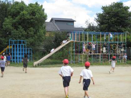 子どもたちの運動場で元気よく遊ぶ姿を