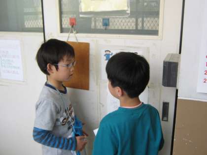 今日は、1.2年の学校探検でした。きっと職員室の前を通る時は,ざわざわしてきっとわかると思っていたら,通ったことに気がつかないくらいとても静かに歩いていました。廊下で様子を見ていると、やさしくそして細かく説明をしている2年生。そして,一生懸命お兄さんお姉さんについていっている1年生の姿がありました。2年生がとても頼もく見えました。