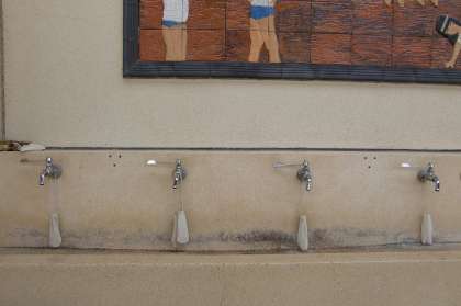 【写真上】水道の蛇口が揃って下を向いています。何のことはない「普通」です。