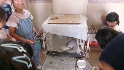 生活科の「いきものとなかよし」の学習で、学校で飼育しているうさぎのクローバーちゃんのお世話をすることになりました。ここまでの学習で、うさぎの飼い方をしっかり調べた子どもたち。最初は、ドキドキしていたクローバーちゃんもしばらくしたらえさを食べるようになり、子どもたちは大喜び。しっかりお世話をして、もっと仲良くなりたいね。
