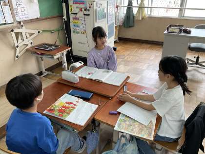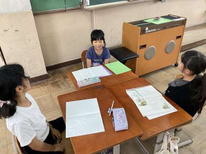 書いた感想はグループで紹介し合いました。「聞き手の目を見て話す」ことを目標に頑張っています。
