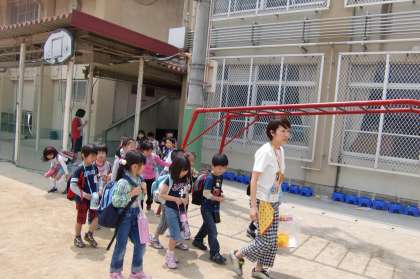 そこで1年生が荷物を背負って『ミニ遠足』です。